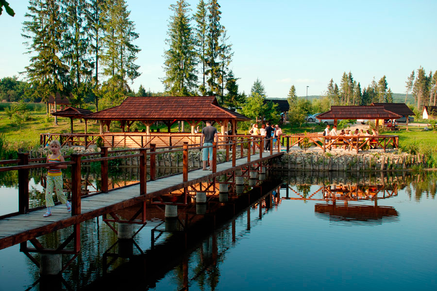 Комплекс пропонує відпочинок в альтанках та павільйонах на березі озера, де Ви зможете приготувати шашлик на мангалах і організувати своє активне дозвілля (спорт, риболовля, водні атракціони, відпочинок на пляжі, збір грибів та інше).